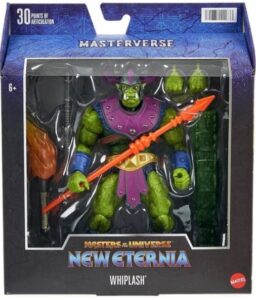 The chaotic cataclysm that shattered New Eternia ripped open a portal to a terrifying dimension known as the Demon Zone, home of the powerful reptilian race, the Caligar, and their leader, Whiplash. The merciless brute conquers New Eternia island by island, as he crushes all who stand in his way with the savage power of his thick-hided tail.