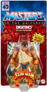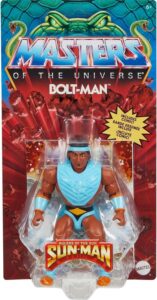 The legacy of Sun-Man was later extended through a licensing partnership between Mattel, Olmec Toys, and YlaSun, allowing Rulers of the Sun characters to be reintroduced through the Masters of the Universe brand. Under this agreement, Mattel produces Sun-Man figures while Olmec Toys and YlaSun retain ownership of the original property. This collaboration formally united Rulers of the Sun with the Masters of the Universe universe, bringing the characters back to action figure form for the first time since their original 1985 releases.