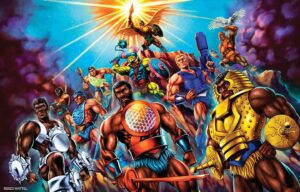 Rulers of the Sun is an action figure property created in 1985 by Yla Eason, centered around the superhero Sun-Man and a cast of original heroes and villains. The line was developed to provide positive representation in toys, introducing an original Black superhero whose powers are derived from the sun, symbolizing strength, energy, and identity. From its inception, Rulers of the Sun was designed as its own universe, complete with distinct character designs, mythology, and themes of empowerment and leadership.